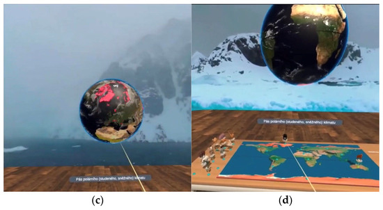 Examples of the Biomes CIVE. (a) Generic environment; (b) Arid (desert and semi-arid) climates; (c) Polar climate; (d) matching animal miniatures to points on the map [31].