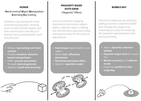 - Yu, D.; Dingler, T.; Velloso, E.; Goncalves, J. Object Selection and Manipulation in VR Headsets: Research Challenges, Solutions, and Success Measurements. ACM Comput. Surv. 2025, 57, 1–34. [Google Scholar] [CrossRef]
