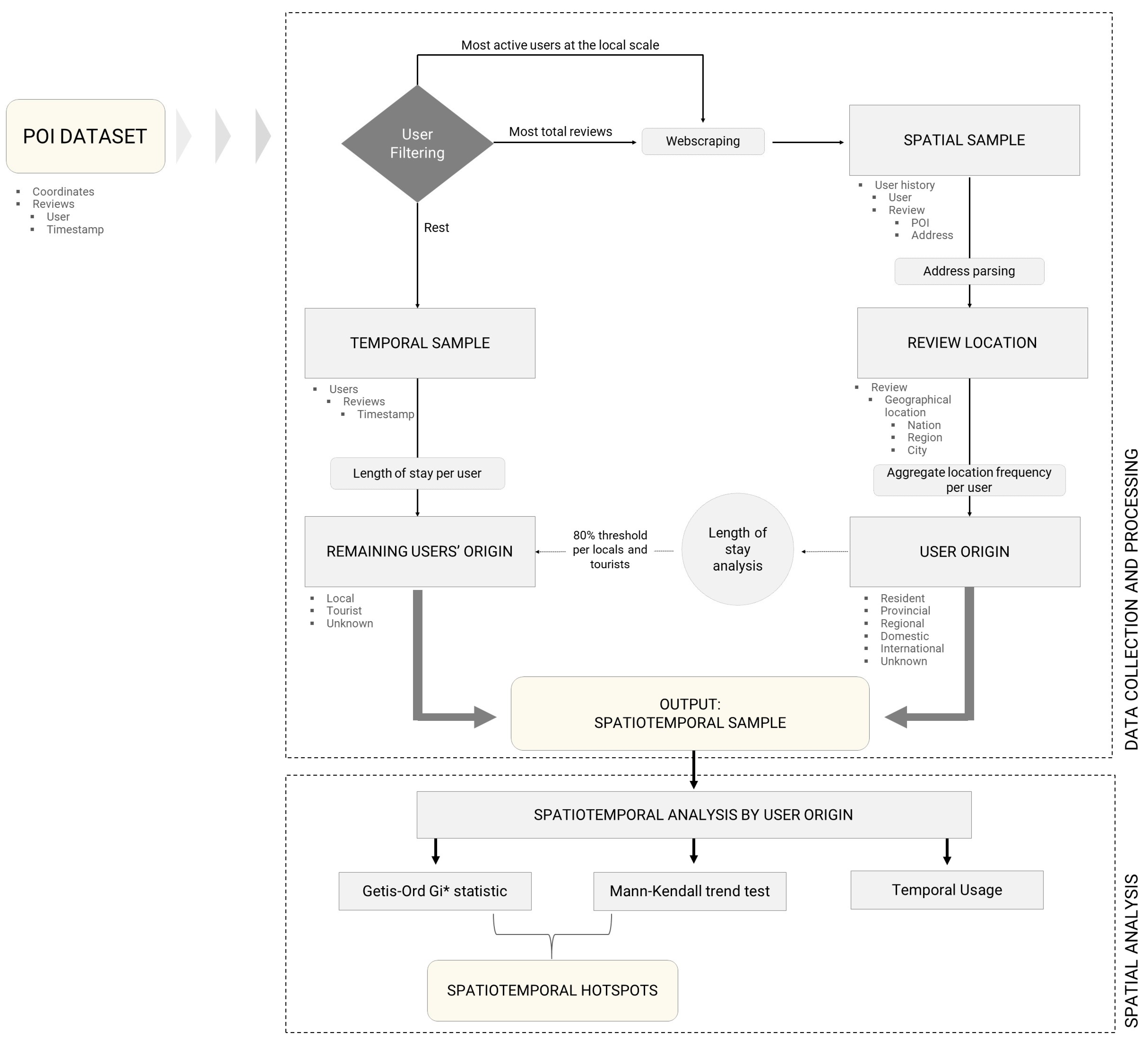 Figure 2. Methodological workflow for spatiotemporal analysis by user origin.