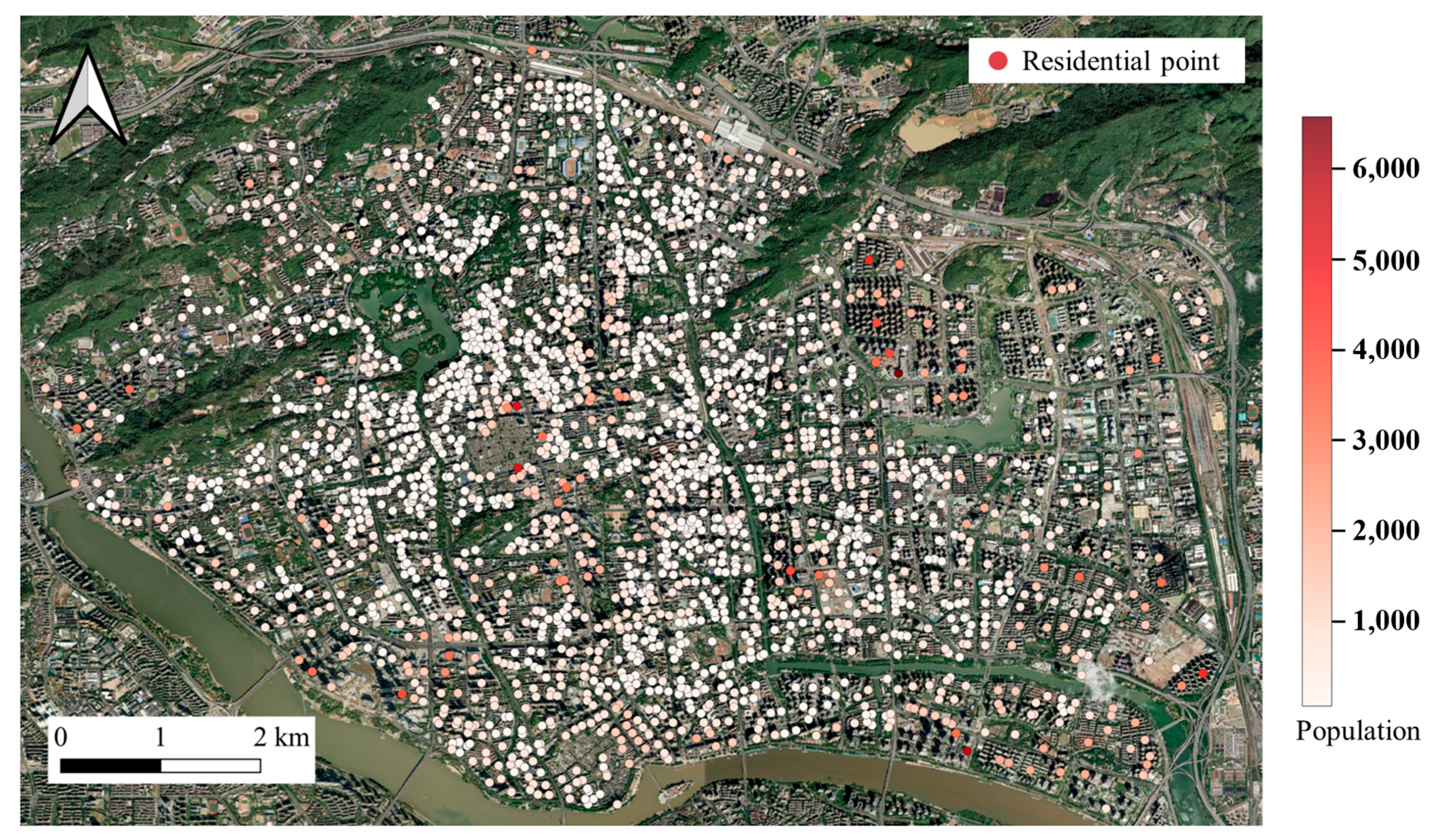 Distribution of residential points in Fuzhou’s main urban area.