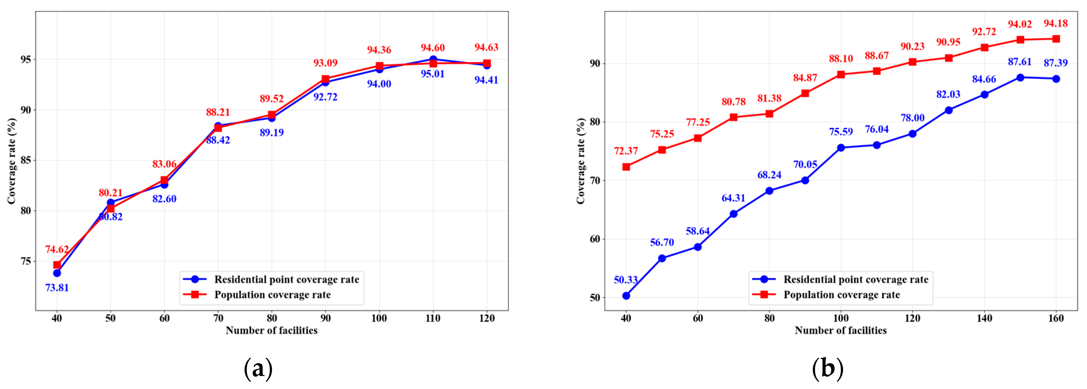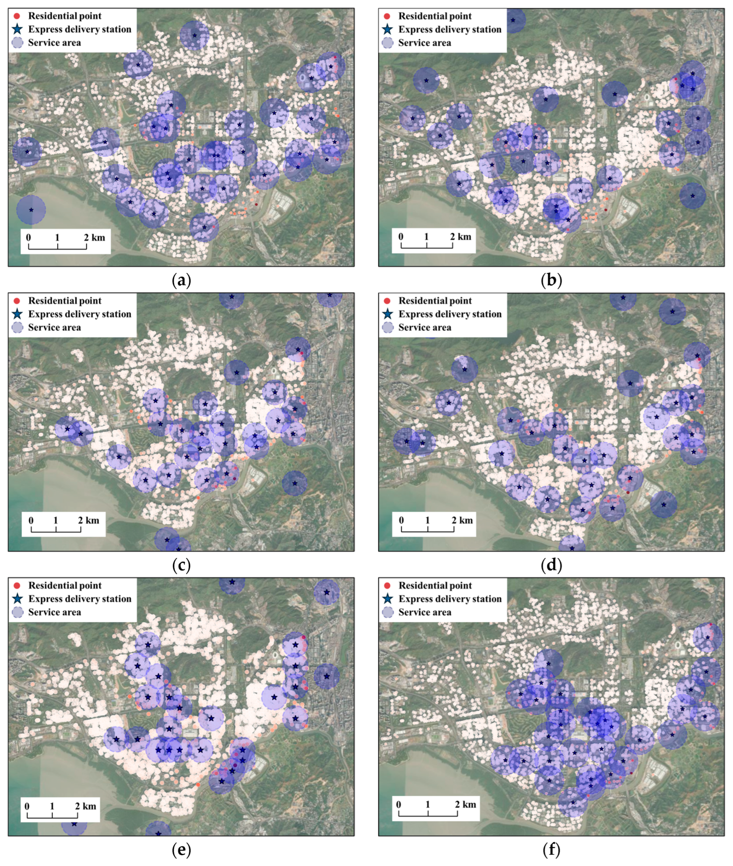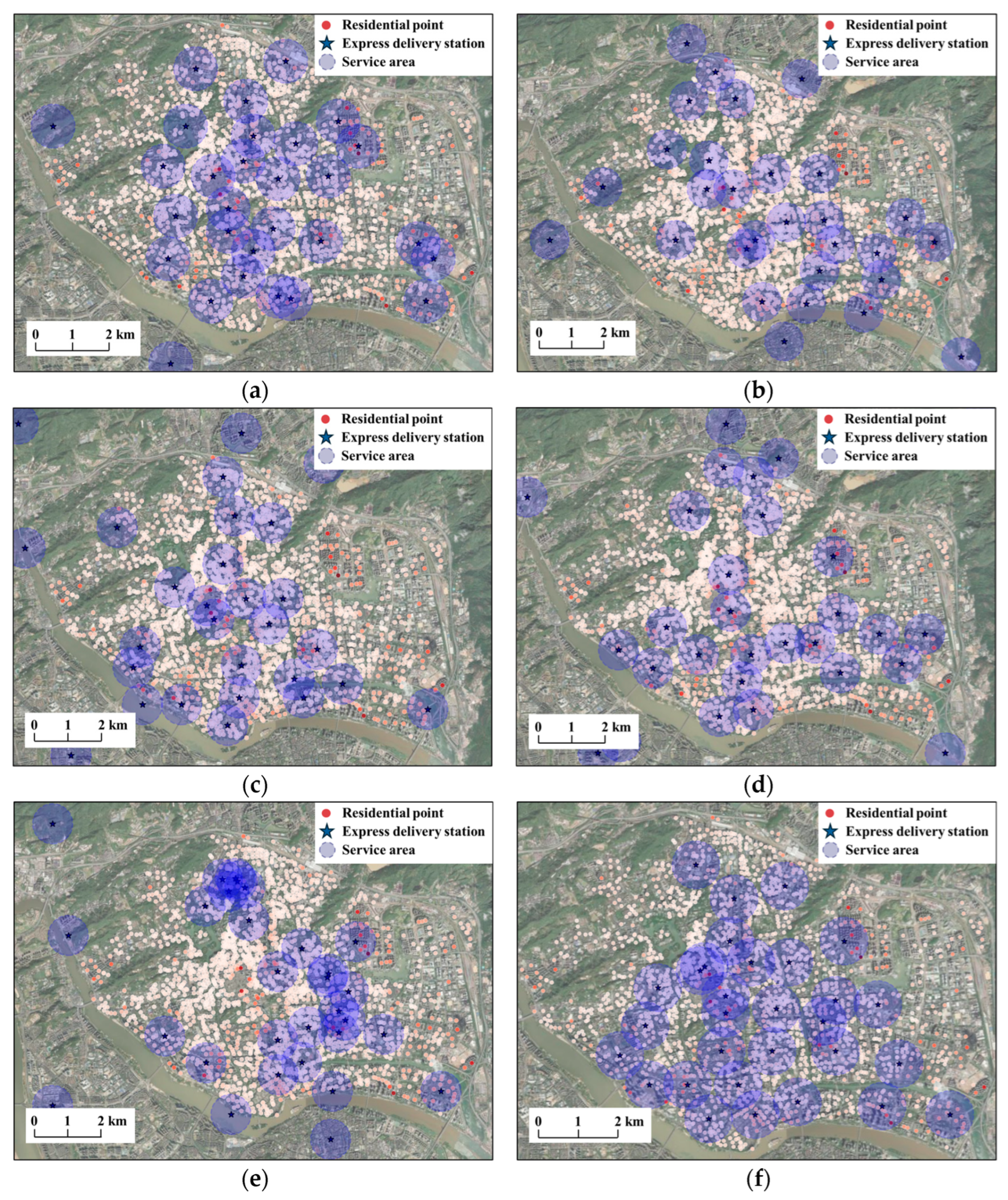 | Methods | Covered Residential Points | Residential Point Coverage Rate | Covered Population | Population Coverage Rate | Max Coverage Population per Station | Min Coverage Population per Station | Median Coverage Population per Station | Average Coverage Population per Station |