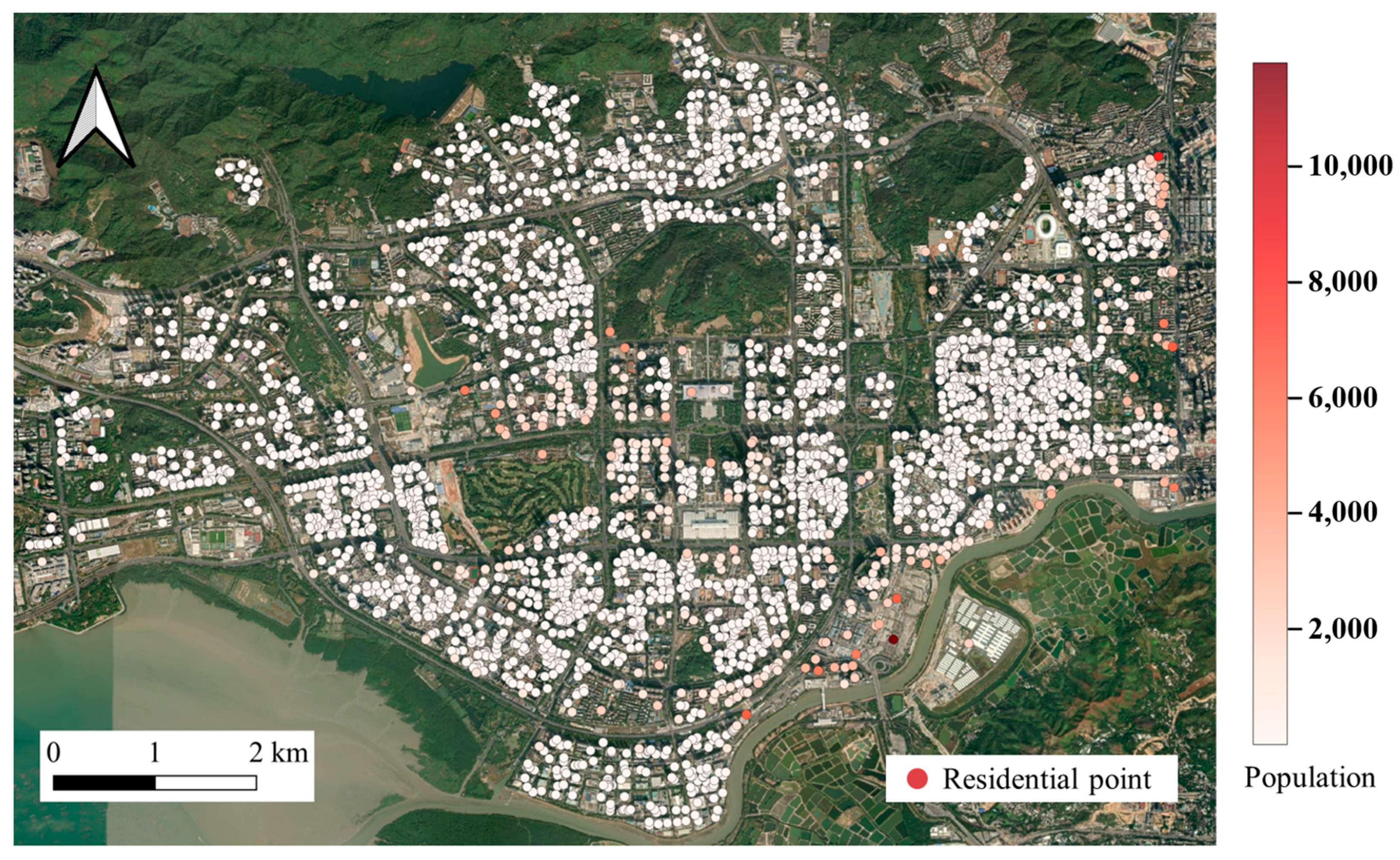 Distribution of residential points in Shenzhen’s Futian District.