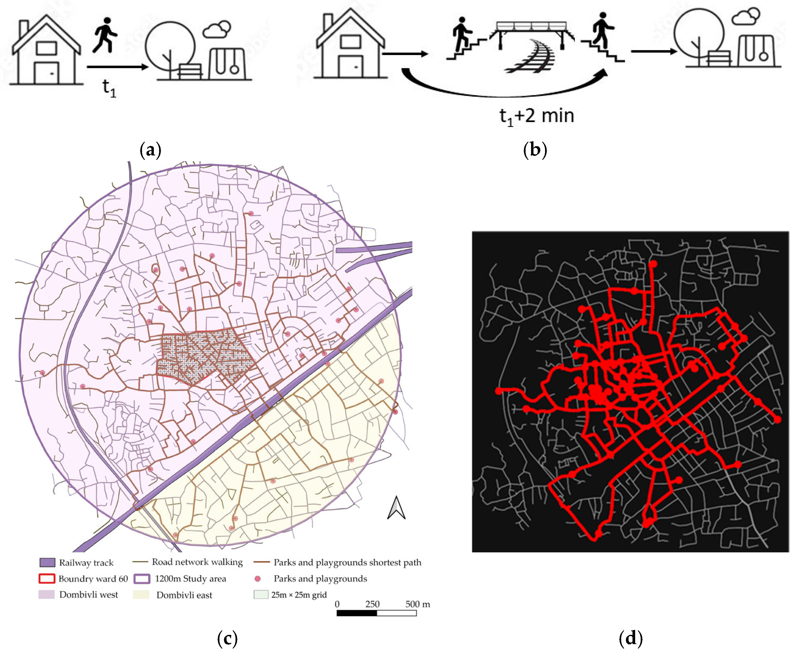 APA StyleBahale, S., Arora, A. S., & Schuetze, T. (2025). Comparative Framework for Multi-Modal Accessibility Assessment Within the 15-Minute City Concept: Application to Parks and Playgrounds in an Indian Urban Neighborhood. ISPRS International Journal of Geo-Information, 14(12), 479. https://doi.org/10.3390/ijgi14120479