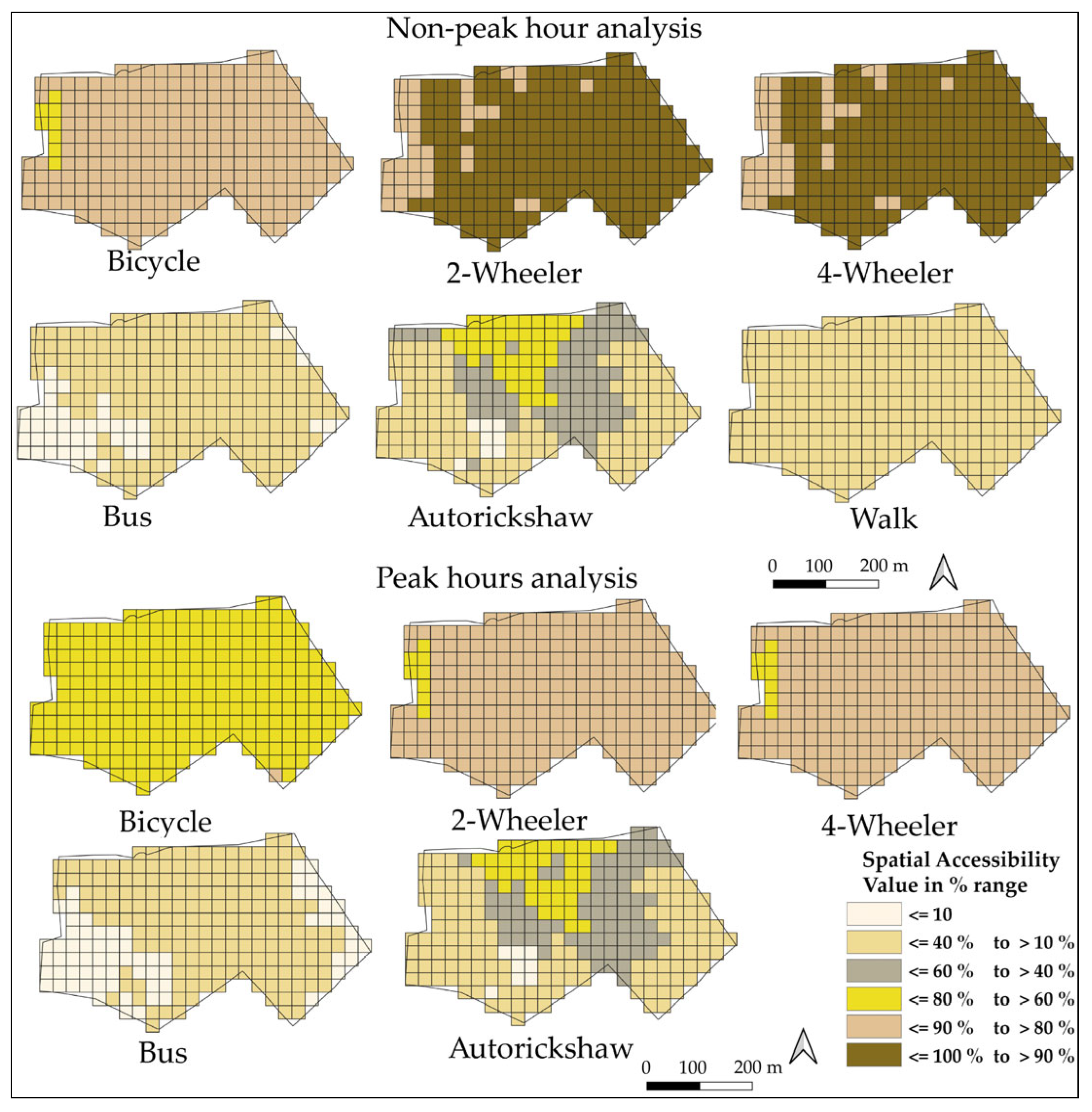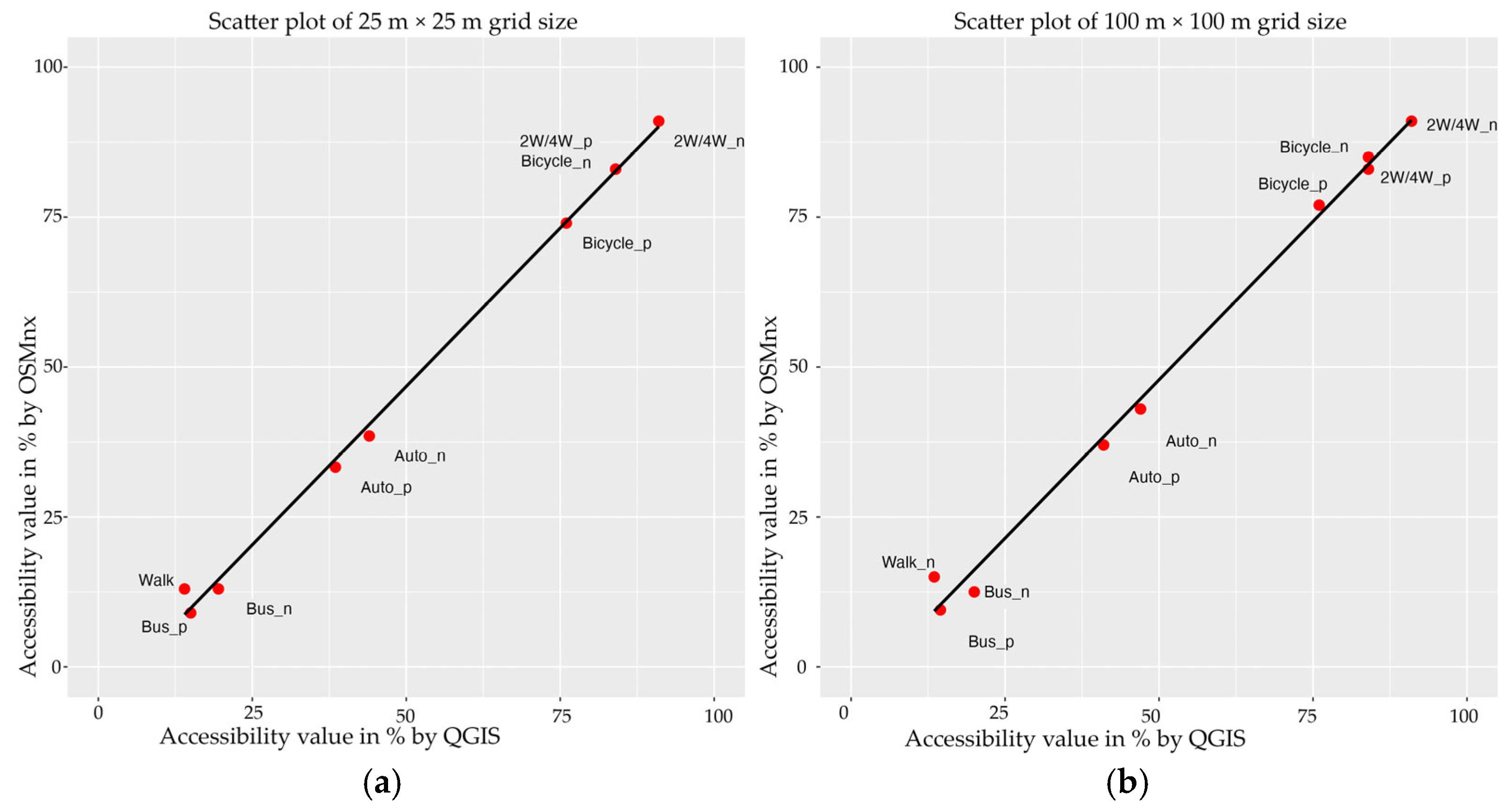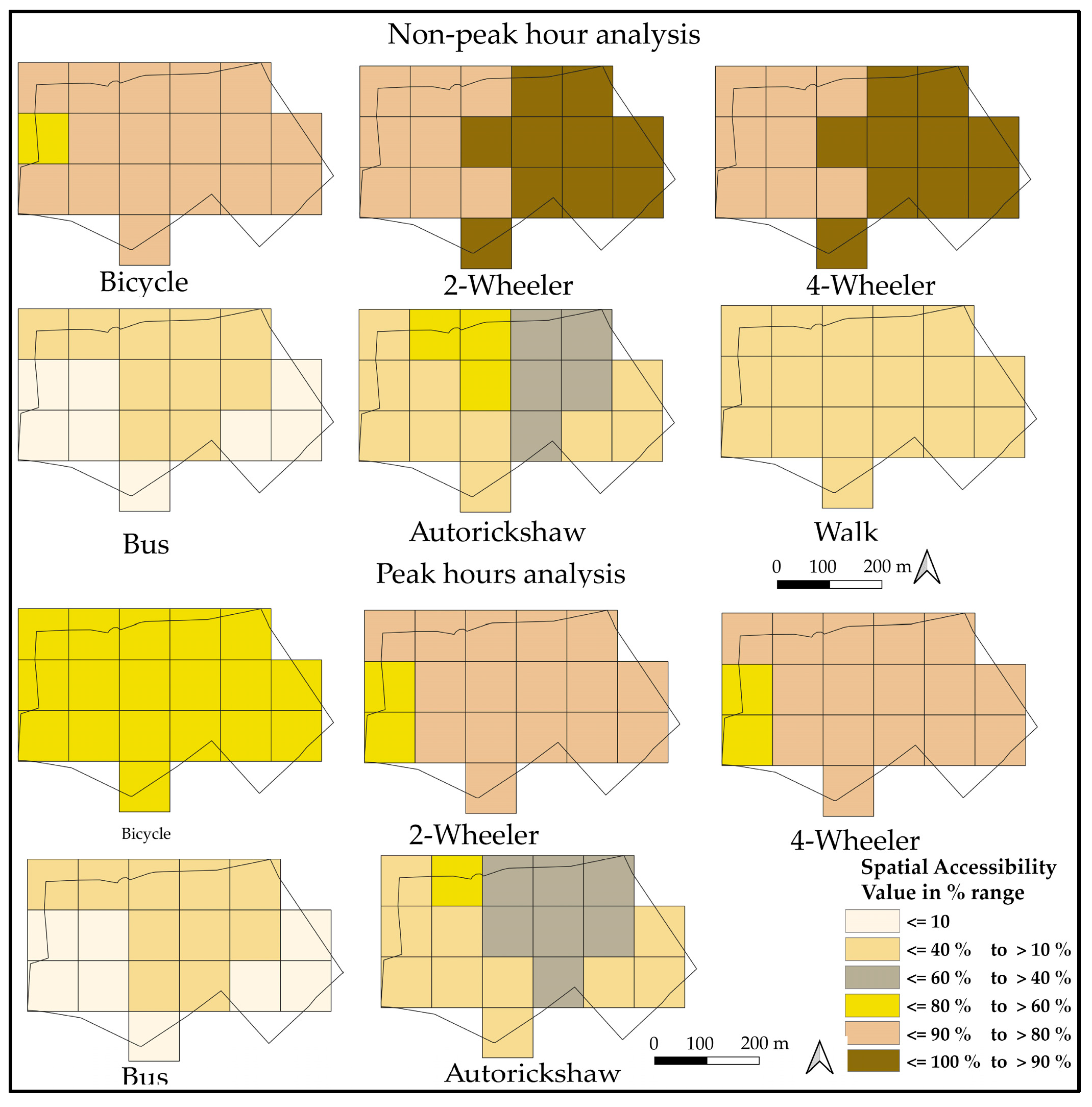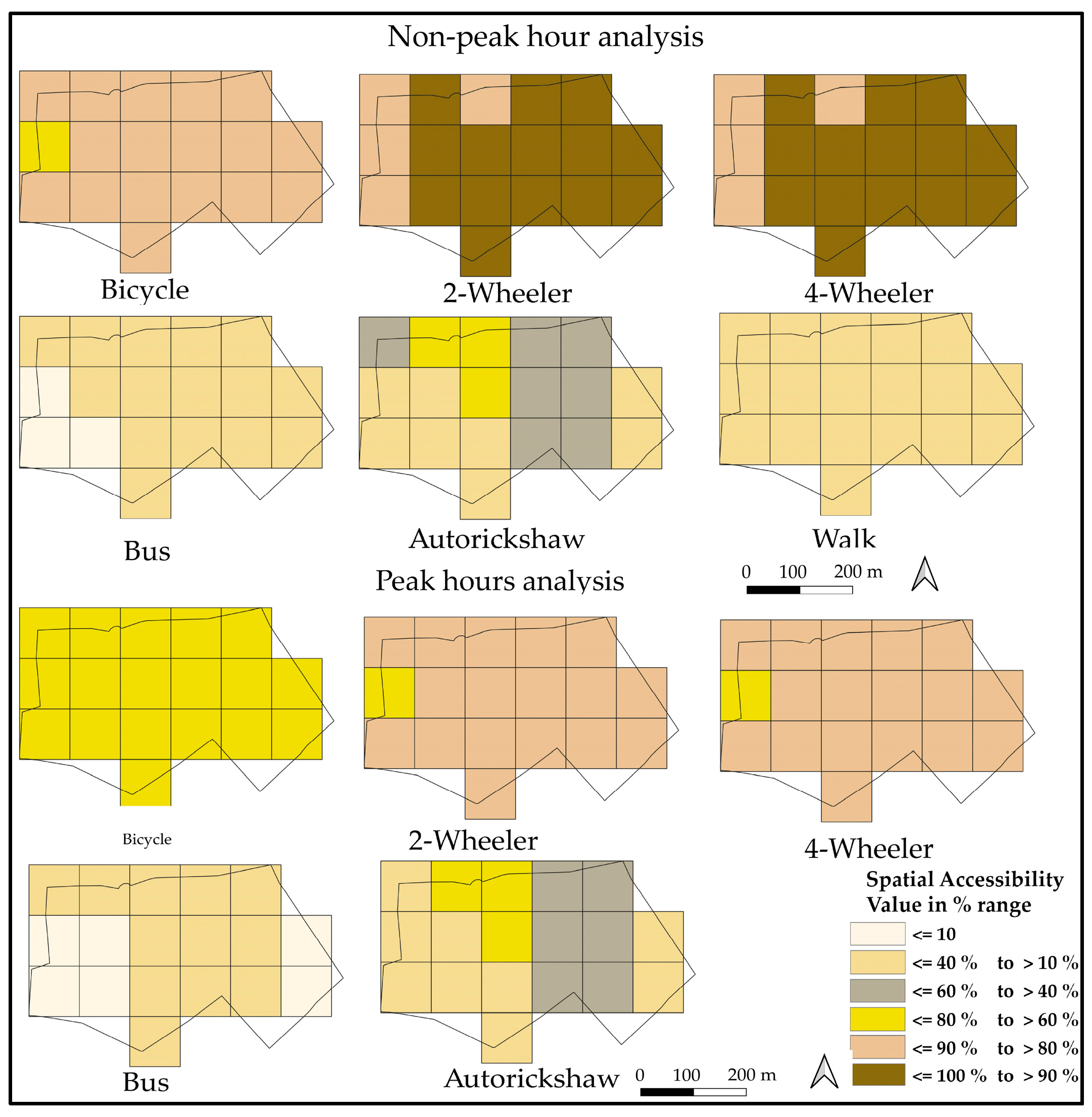 2.4.3. Accessibility Assessment Using Various Mode of Transport