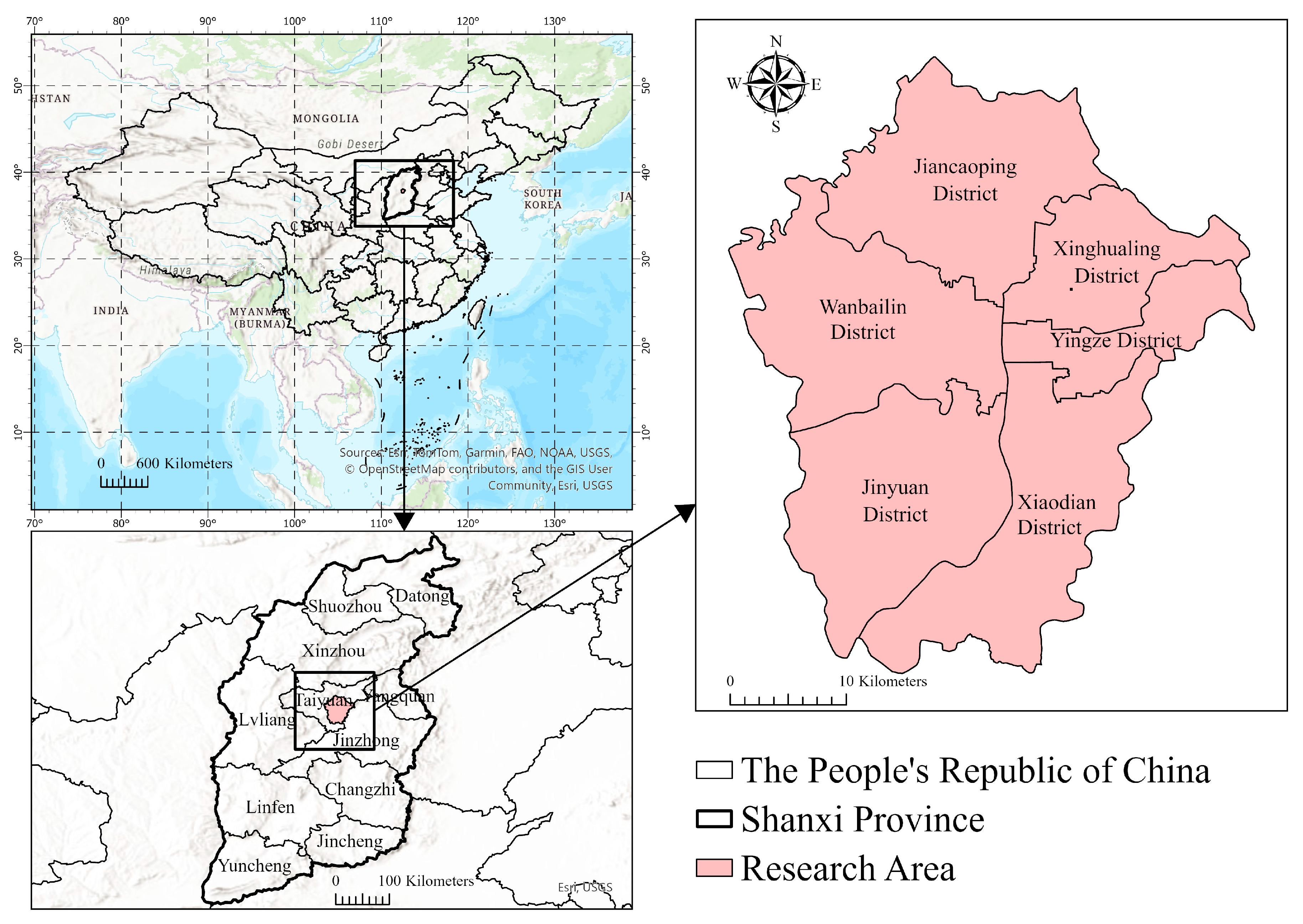 | Socioeconomic | Population density (POP) | Population per km2 in each 2 km × 2 km grid | Taiyuan Statistical Yearbook 2024; Census data |