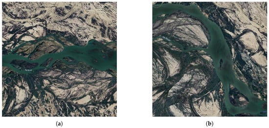 Figure 1. Remote Sensing Imagery of Ili River Valley in Xinjiang, China with Different Orientations. (a) East-West Oriented Remote Sensing Imagery of Ili River Valley. (b) North-South Oriented Remote Sensing Imagery of Ili River Valley. - Feature Interpretability Limitations. Although current deep learning-based spatial pattern recognition methods have enhanced feature representation capabilities, their “black box” nature results in similarity measurements lacking geographic semantic interpretations [14]. For instance, Deep Neural Networks (DNNs) classify output images without providing further explanations of scene-corresponding results [15,16]. Consequently, developing techniques that make black-box processes more transparent and comprehensible is crucial in the remote sensing domain. In medical resource allocation scenarios, similarity models that merely output probability values without revealing the spatial association mechanisms between population density distribution and healthcare needs significantly constrain the scientific validity of policy formulation.