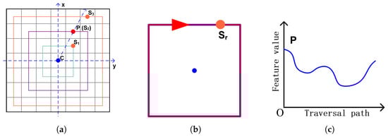 Following the determination of directional dominance, the algorithm computes the Cartesian coordinates of the starting point for each concentric layer r (where ). This calculation preserves the directional consistency between the starting points of various ring layers and the maximum value point P, while adapting to the spatial scope of different ring layers:
