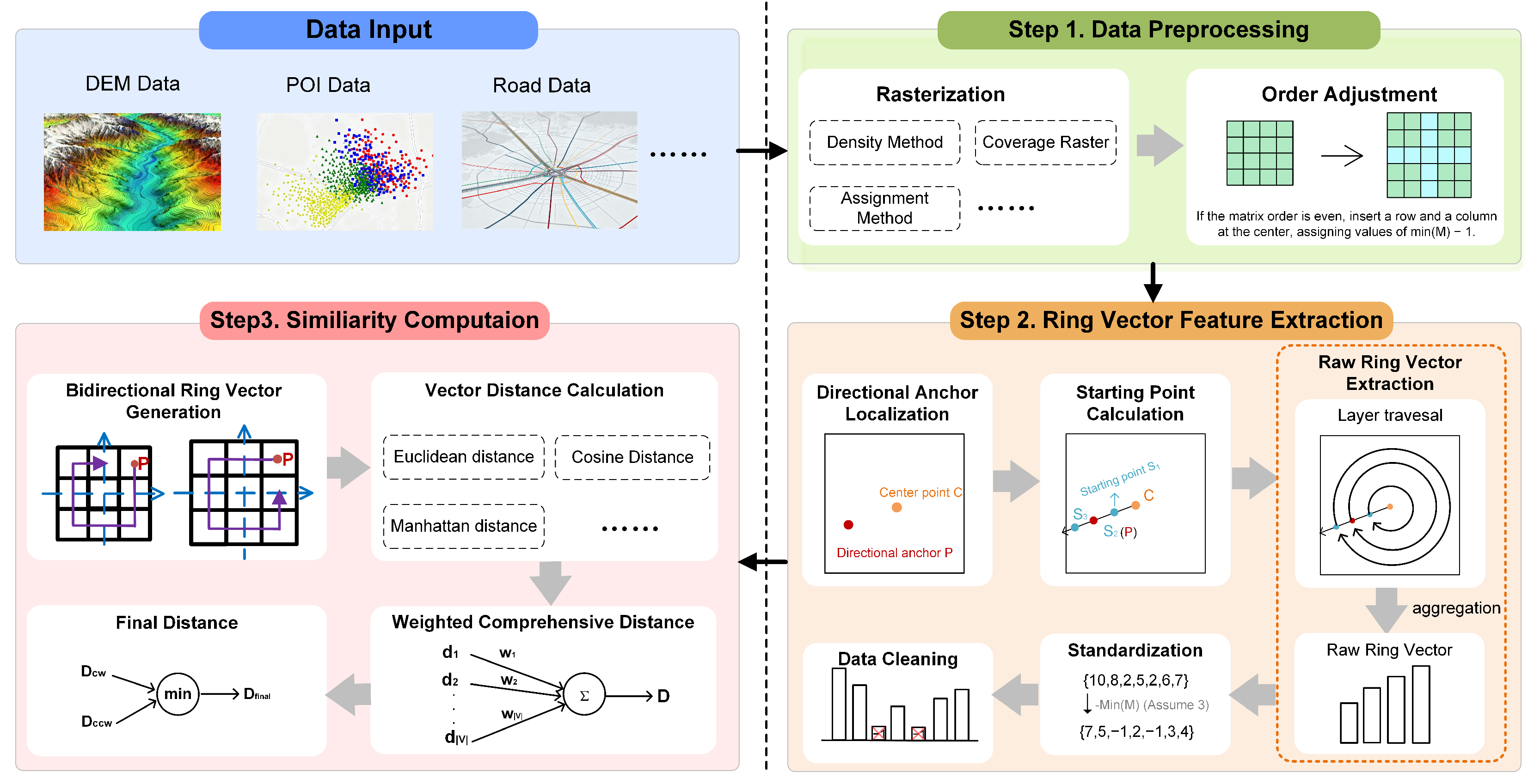 - Structural Preservation: The ring layer structure preserves the spatial adjacency relationships among elements in the matrix, enabling the ring vector to effectively capture the spatial structural features of the region.