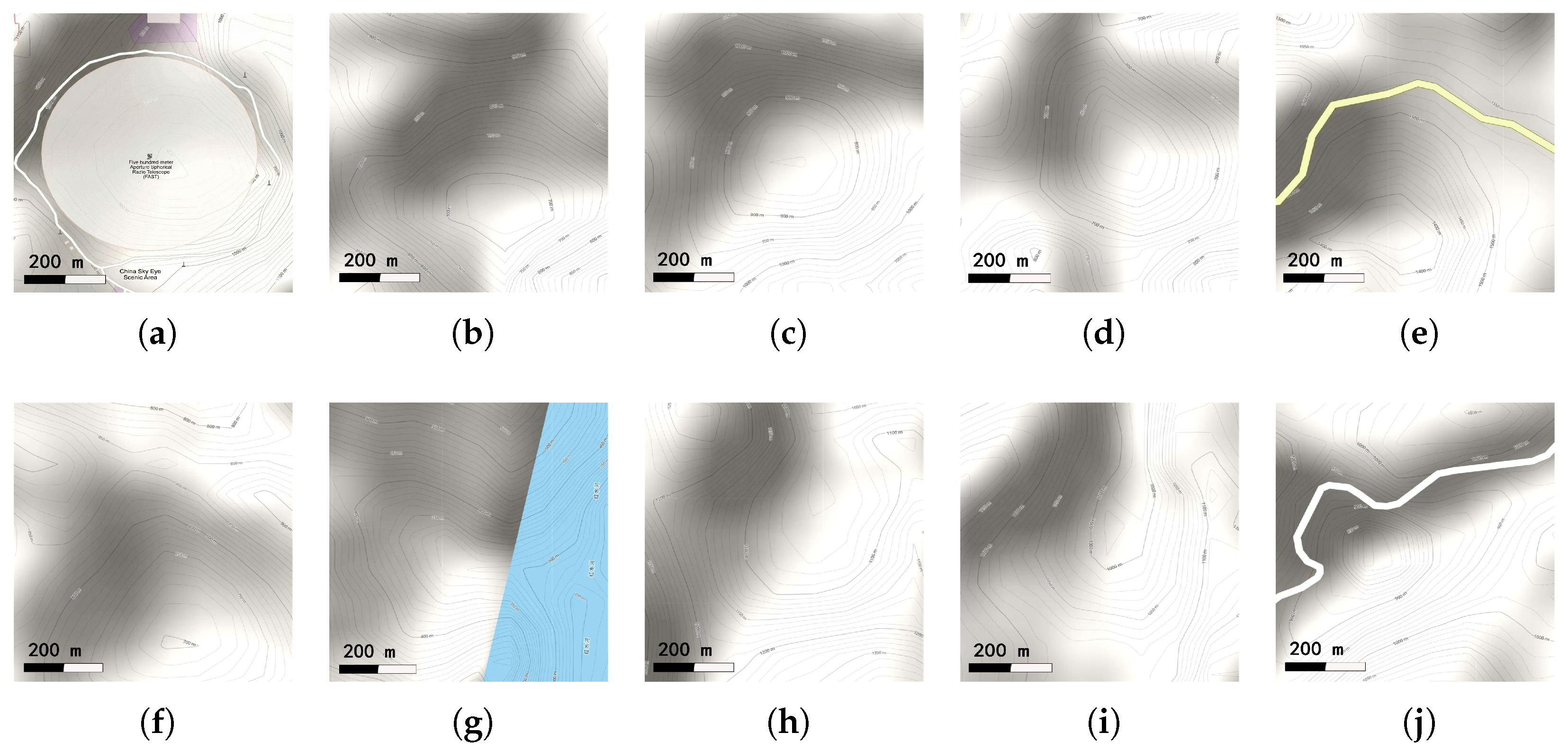 - Unidimensionality of features: The current method performs matching based on a single spatial feature (e.g., elevation or POI density), without integrating heterogeneous data such as hydrology, geology, or accessibility, which limits its applicability in multi-criteria real-world scenarios.