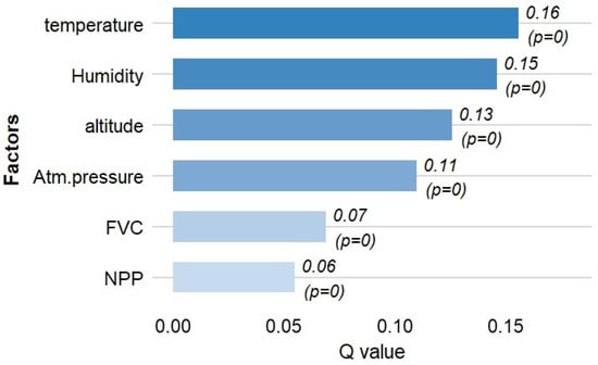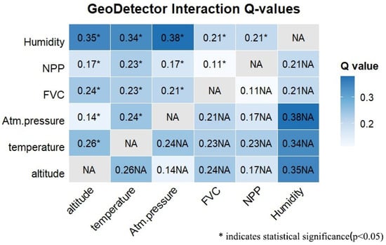 The validation of the factor detection Q-values in this study was conducted from both statistical and comparative perspectives. Statistically, all Q-values reported were found to be significant. Furthermore, our results align closely with existing literature [13,14,15]; for instance, the dominant factors identified—terrain and climate—are consistent with those reported in the study by Shi et al. on influencing factors of oxygen content. This consistency reinforces the reliability and credibility of the Q-values obtained in our analysis.