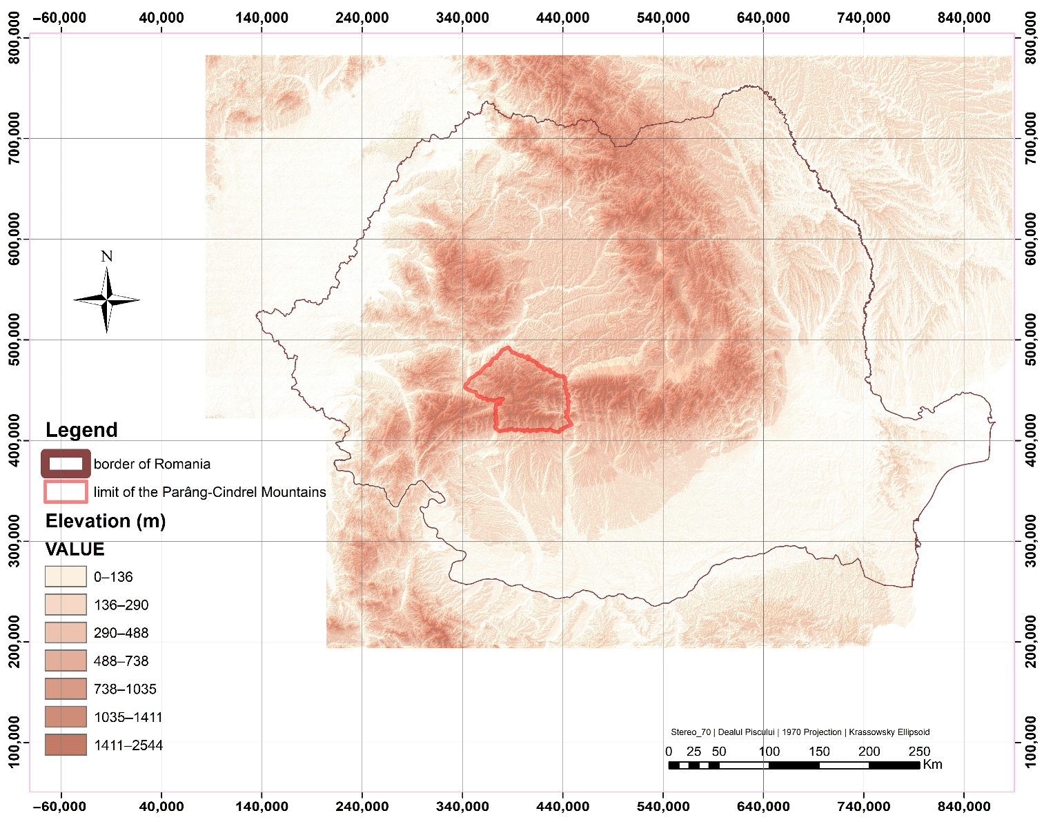 51]. This is a very sparsely populated area, with only scattered villages located on the north-western part of the study area, on the gentle slopes of the Sureanu and Cindrel Mountains.