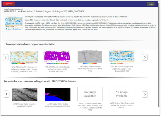 After a user selects a dataset to view more detailed information, the semantic recommendation system analyzes the interaction context—including viewed datasets, search history, and similarity patterns—to suggest additional datasets that are thematically or spatially related. Figure 9 illustrates this recommendation panel, which appears dynamically within the geoportal interface to guide users toward potentially relevant data resources.