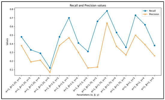 The coefficients α, β, and γ weights views before filters, views after filters, and downloads, respectively. In this study they are fixed to α = 1, β = 1.75, and γ = 3. These values were obtained by testing several combinations and selecting the setting that achieved the best overall precision and recall for the recommender system (Section 4.5).