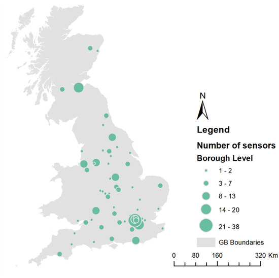 Spatial distribution of Wi-Fi sensors in Great Britain.