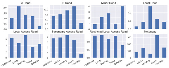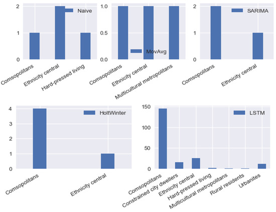 The results shown in Table 1 confirm that the LSTM prediction model is the optimal method with the lowest RMSE for 83.76% of locations, where 76.81% of the predictions meet the DM test, which means the LSTM model outperforms other prediction methods on footfall forecasts within 64.33% of all locations with a statistical significance.