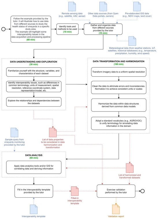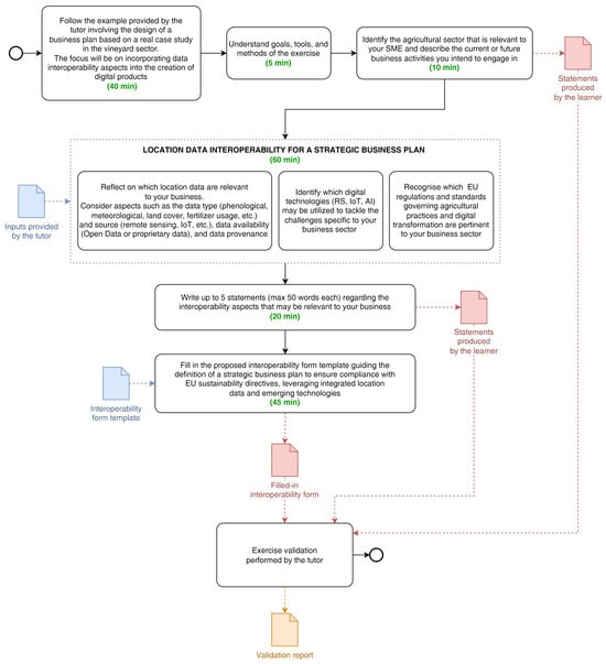 Example of LOs for a BCS. In the BCS focused on digital agriculture, a set of 22 LOs, split between 9 for managers and 13 technicians, were identified to equip participants with the necessary skills to navigate the complexities of data interoperability in the agricultural sector. For managers, the training emphasizes strategic insights on data interoperability principles that support business planning. It also covers the European Union’s regulatory concerning eco-sustainability, ethical considerations, privacy, and security. For technicians, the BCS-LOs offer a comprehensive blend of theoretical knowledge and practical skills. This training prepares them to tackle the challenges of integrating diverse data sources, such as satellite imagery, IoT data, land registries, and plant phenology data. Emphasis is placed on using GIS for agricultural monitoring and developing expertise in data models and harmonization techniques. Practical examples, including insights from vineyard cultivation, are also incorporated to illustrate real-world applications.
