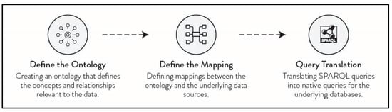 These mappings define how relational data are represented as RDF triples, making it possible to execute SPARQL queries on relational databases seamlessly. The triples generated by the mapping and ontology are not stored permanently but are accessed through SPARQL queries using SPARQL-to-SQL rewriting techniques. The development of mappings and ontologies is iterative. Therefore, a better understanding of the data will smooth the system’s improvement process.