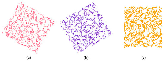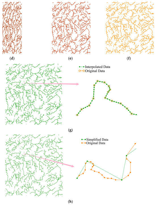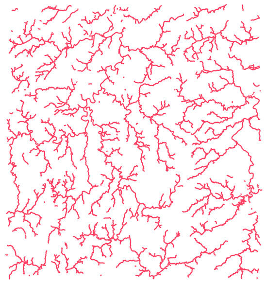 The experiments utilize a vector geographic dataset representing waterways, as shown in Figure 3. This dataset comprises line data from regions located at the intersection of Hunan, Jiangxi, and Guangdong provinces in China. The coordinate reference system is CGCS2000, with a 3-degree Gauss–Kruger projection and a central meridian at 114° E. The dataset contains 1540 polylines, with an average of 56 vertices per polyline. The maximum number of vertices in a single polyline is 550, while the minimum is 2, and the median is 45, making it suitable for evaluating the proposed algorithm’s robustness and efficiency.