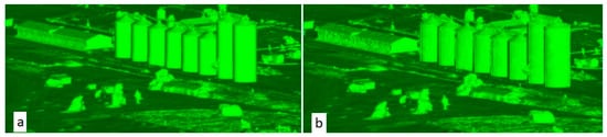 Table 2 shows the statistical parameters of the accuracy reached in the photogrammetric model. The radius differences reveal that the photogrammetric model typically underestimates the radius compared to survey data, with minor discrepancies overall but some significant outliers. These differences can largely be attributed to the precision and accuracy of silo capture in traditional surveying. For enclosed areas, the photogrammetric model tends to record smaller values than survey data, with median differences around −4.72 m2 and a lower fence of −34.92 m2 indicating substantial deviation in some of the data from the expected range or trend. In terms of total edge length, the photogrammetric model generally underestimates when compared to survey data, with a median difference of −0.78 m. However, there are instances where the photogrammetric model has longer lengths. The precision in capturing silo edges during the survey contributes significantly to these differences.