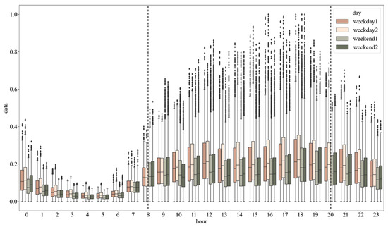 Boxplot of the 24 h variation of vitality at the TAZ level in Shenzhen.