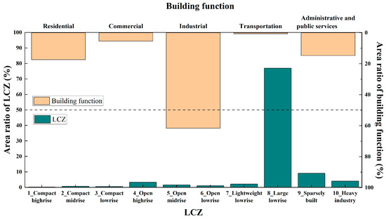 Area proportion of different building functions and LCZ types in potential deployment zone.