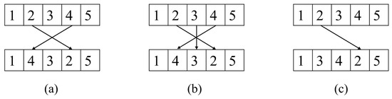Illustration of operators, (a) exchange operator, (b) invert operator, (c) relocate operator.