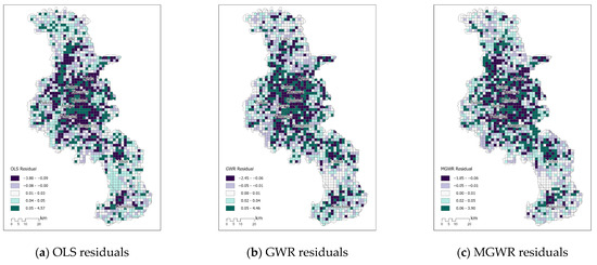 - Fotheringham, A.S.; Yang, W.; Kang, W. Multiscale geographically weighted regression (MGWR). Ann. Am. Assoc. Geogr. 2017, 107, 1247–1265. [Google Scholar] [CrossRef]