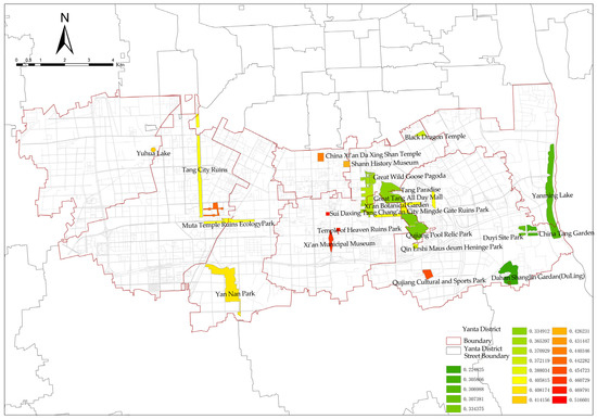 - This study focuses mainly on evaluation from the perspective of the street, ignoring important dimensions such as cultural attributes, energy level, and the size of the scenic spots. To assess the development potential of cultural sites more comprehensively, future studies will seek to incorporate these factors into the evaluation system.