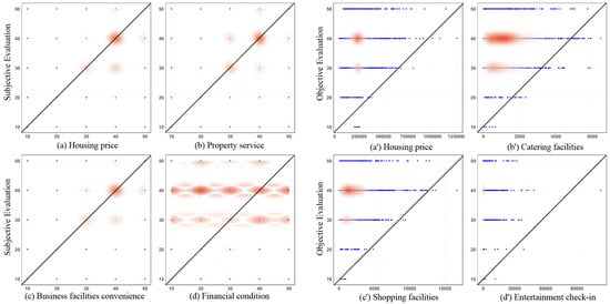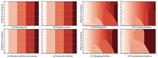 As shown in Figure 4(A3), financial pressure suppresses life satisfaction more intensely in administrative boundary areas (coefficient: −0.32) than in city centers (−0.11) with an increase of approximately 191%. This spatial heterogeneity carries significant theoretical implications: (1) Administrative barriers disrupt public service distribution, amplifying financial strain through institutional costs such as social security mismatches for cross-district workers and inflated school district housing prices. (2) Mismatched residential–employment spatial patterns push commuting costs onto peripheral areas, creating “spatial buffer zones”, a trend particularly evident in the historic core of Gusu District, where traditional housing stock remains intact. Unlike prior studies that oversimplify economic factors as linear influences, this research employs spatial heterogeneity modeling to systematically analyze the geographically differentiated impacts of financial conditions on life satisfaction, laying the groundwork for subsequent subjective–objective analyses.