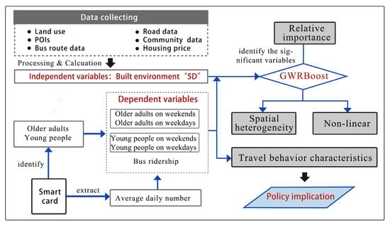To address these research gaps, we developed a combined model, GWRBooST, which integrates GWR and XGBoost, to explore the spatially heterogeneous and nonlinear impacts of the built environment on bus ridership, including both older adults and younger adults.