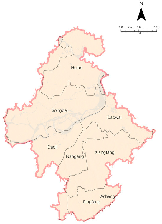 The research area includes seven districts: Daoli, Daowai, Nangang, Xiangfang, Pingfang, Songbei, and Hulan. The total area is 1126.40 square kilometers with a total population of approximately 6.95 million and a GDP of RMB 391.236 billion as of 2023 [27]. According to the Harbin Urban Land and Space Master Plan (2021–2035), the old city is defined as the historical areas of Daoli, Daowai, and Nangang, which was formed with the construction of the Central Asian Railway (1903). This area includes 34 national-level cultural heritage sites and 79% of the historical building stock. The new city refers to the Songbei New District, which began development in 2004, and the Hanan Industrial New City, which expanded in 2015, accommodating 83% of the newly added cultural facilities (Figure 1).