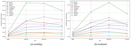 In addition to measuring spatial clustering, an emerging body of research focuses on the temporal aspect of urban vitality. Some scholars compare weekday and weekend patterns, observing that weekday vitality often peaks during commuting hours, while weekend activity is more centered around midday or leisure periods [26]. Others highlight diurnal changes, particularly how vitality varies between daytime and nighttime, and further show that different land use or functional areas within a city experience different vitality cycles [27]. Despite these insights, many existing studies are constrained to a single date range, a limited set of time periods (e.g., only daytime vs. nighttime), or specific neighborhood clusters, thereby overlooking the continuous evolution of vitality across multiple temporal scales.