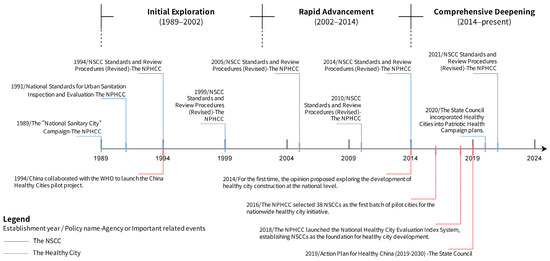 The rapid urbanization of the global population has underscored pressing urban health challenges, necessitating effective policy interventions to promote urban health development. Currently, more than half of the world’s population lives in urban areas, and this proportion is expected to reach 68% by 2050 [1]. The increasing complexity of urban public health issues stems from the interplay of factors such as urban development, rising population density, environmental pollution, and climate change, all of which have profound impacts on public health [2,3]. Furthermore, urban planning and policy interventions play a crucial role in shaping residents’ quality of life and overall health outcomes [4,5]. China, one of the world’s most populous and urbanized nations, has faced significant public health challenges associated with its rapid urban growth [6]. Starting in 1989, the Chinese central government began to advocate for the National Sanitary Cities in China (NSCC) policy, based on the country’s Patriotic Health Campaign, to improve urban sanitary conditions and enhance public health. NSCCs are nationally recognized cities that represent an exemplary level of regional health and sanitation [7]. In July 2017, the World Health Organization (WHO) presented the Chinese government with the “Award for Excellence in Social Health Governance” for the Patriotic Health Campaign’s significant achievements [7].