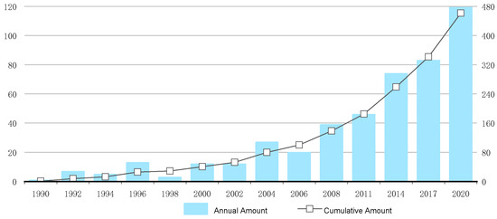 Since 1990, the NPHCC has been conducting evaluations to designate NSCCs. To date, 462 cities have been awarded the title, representing nearly 60% of all urban areas (districts) nationwide; as shown in Figure 3, the number of NSCCs generally exhibits an upward trend.
