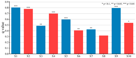 where represents the degree to which the influencing factor explains the spatial distribution of NSCCs, with values in the range of [0, 1]. A higher value indicates a greater influence of the factor on the spatial distribution of NSCCs. and represent the study unit’s total sample size and variance, respectively, and and denote the sample size and variance of the jth layer (j = 1, 2, 3, …, M).
