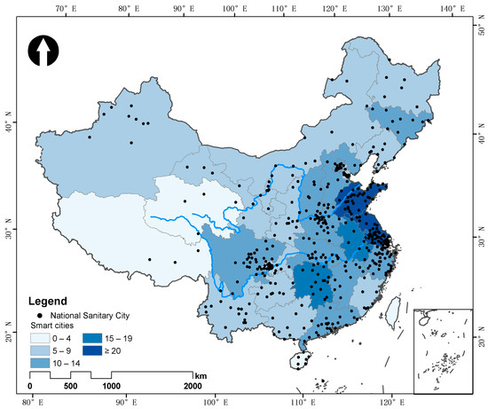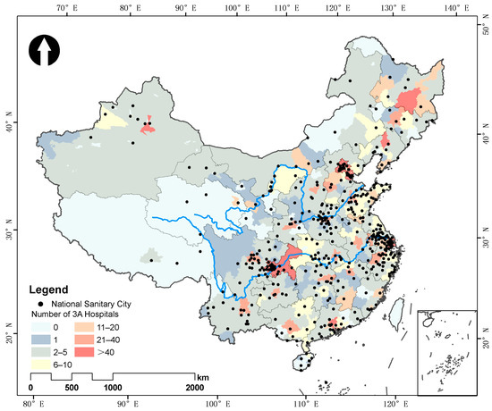 This analysis is based on the NSCC list published in December 2020. The 462 cities across 31 provinces, municipalities, and autonomous regions were included. While social organizations or institutions have released similar lists, the list issued by the central government of China is considered the most authoritative, due to the country’s particular political system [31,32]. The data used in this study were sourced from the Resource and Environment Sciences and Data Platform at the Institute of Geographic Sciences and Natural Resources Research, Chinese Academy of Sciences (http://www.resdc.cn/), the China Statistical Yearbook, and the China Health Statistical Yearbook. Information on China’s National Smart Cities Pilot Project was taken from the Ministry of Housing and Urban-Rural Development website (https://www.mohurd.gov.cn/), data on 3A hospitals were retrieved from the website of the National Healthcare Security Administration (https://www.nhsa.gov.cn/), and a map of China was provided by the Natural Resources Ministry’s Map Technology Review Center (https://www.zrzyst.cn/). All data were accessed on 1 August 2024.