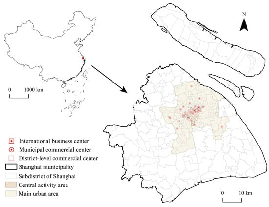 Shanghai, situated at the mouth of the Yangtze River, spans an area of 6341 km2. According to Shanghai’s commercial planning, the city is divided into the Central Activity Zone and the main urban area (Figure 1). As the economic center of the Yangtze River Delta and a global hub for economics, finance, trade, and shipping, Shanghai’s geographical advantages and economic vitality have provided new opportunities for the growth of the coffee retail industry. In 2023, Shanghai hosted a total of 9553 coffee shops, ranking first in the nation, with Luckin Coffee and Starbucks holding the top two positions in the city’s coffee market [59].