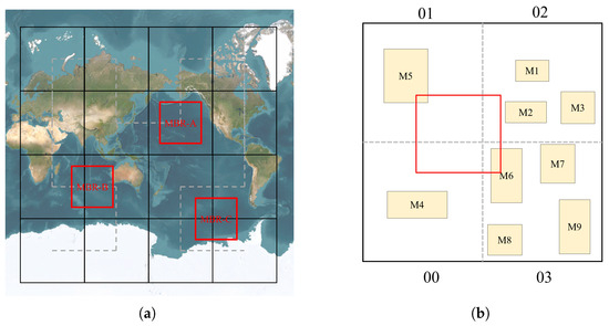 The research team led by Cheng Chengqi from Peking University proposed the GeoSOT (Geographic coordinate Subdividing grid with One-dimensional integral coding on Tree) method, which uses a one-dimensional integer array for global latitude and longitude partitioning [23,24,25]. This method has been widely applied in spatial data indexing and retrieval [26,27,28]. Tong et al. [29] proposed the Multi-Scale Time-Partitioning and Integer-Coding (MTIC) method. By using this method to index the temporal information of objects, efficient multi-scale querying can be achieved. GeoSOT-ST extends the GeoSOT spatial-partitioning scheme to the temporal dimension, forming a global spatiotemporal subdivision scheme [30,31].