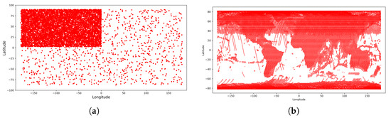 To further assess the performance of R-MLGTI on real-world spatial datasets, we downloaded Landsat 7 satellite data released by the United States Geological Survey (USGS). This dataset spans from 1999 to 2018 and contains a total of 2,585,203 geospatial records [48]. Its spatial distribution is shown in Figure 6b, where land areas are significantly denser compared to oceanic regions.