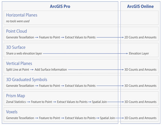 ArcGIS Pro tools used in data preparation and 3D geovisualization in ArcGIS Online.