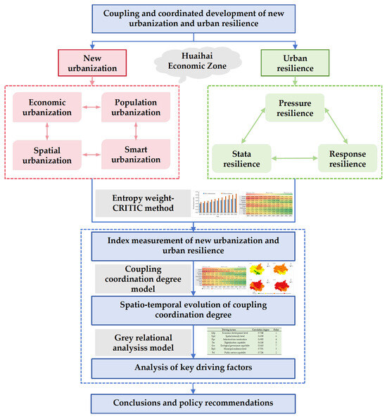 Zhang, H.; Li, S.; Chang, J. Spatiotemporal Evolution and Driving Factors of Coupling Coordination Degree Between New Urbanization and Urban Resilience: A Case of Huaihai Economic Zone. ISPRS Int. J. Geo-Inf. 2025, 14, 271. https://doi.org/10.3390/ijgi14070271