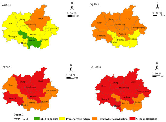3.2.2. Spatial Evolution of the CCD Between New Urbanization and Urban Resilience
