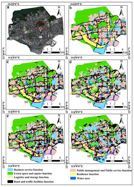 - Zhang, Y.; Xu, Y.; Gao, J.; Zhao, Z.; Sun, J.; Mu, F. Urban functional zone identification based on multimodal data fusion: A case study of Chongqing’s central urban area. Remote Sens. 2025, 17, 990. [Google Scholar] [CrossRef]