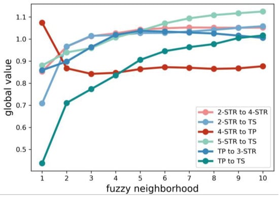 In addition to the fuzzy neighborhood setting, the Monte Carlo simulation for the significance test used a sample size of 1000 and was performed with 1000 random iterations, consistent with approaches employed in previous studies [].