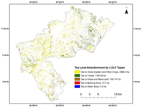 Spatial distribution of abandoned tea lands with respect to land use/cover (LULC) classes.