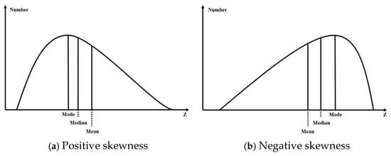 In a perfectly symmetric distribution, the skewness value is zero, meaning the mean, mode, and median are equal. However, in an asymmetric distribution, the skewness can be either positive or negative. A positive skewness indicates that most of the data points are concentrated on the left side of the mean, with a longer tail extending to the right. Conversely, a negative skewness suggests that the data is concentrated on the right side of the mean, with a longer tail extending to the left. Figure 3 illustrates the graphical representation of positive and negative skewness in data distributions.