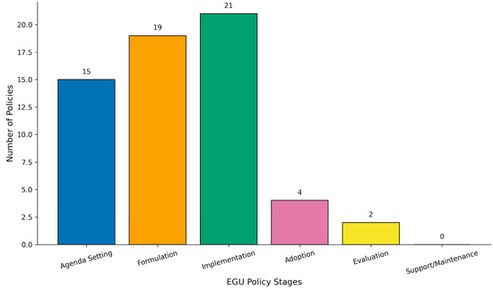 It is worth mentioning that Policy Cycle Models, despite their analytic value, have always been criticised as a patchy representation of later processes of evaluation and feedback/maintenance. These stages are poorly institutionalised in practice compared to agenda setting or formulation and thus are not visible in policy analysis or governance outputs [76,77,78]. This is also a concern that has been raised in the NSDI literature, with researchers observing a paucity of approaches toward systematic evaluation and sustainability [24,68,79]. In the use of the EGU model, this limitation is recognised, so that the underrepresentation of these stages, in the context of the NSDI, is not only a matter of unrealized methodological opportunity, but also of substantive governance concern. Table 2 provides an overview of the integration of NSDI in policy cycle stages of the EGU. These connections between stages of the policy cycle and geospatial infrastructures are mentioned in the literature of governance and spatial planning, which are noted in Table 2.