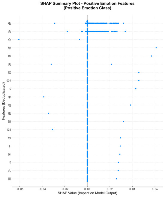 The waterfall analysis demonstrates that the model focuses on semantically meaningful terms while filtering out non-informative tokens. Positive contributors relate to satisfactory charging experiences, while negative contributors involve problem-related terms. This selective attention mechanism ensures that predictions are based on substantive content rather than superficial features.