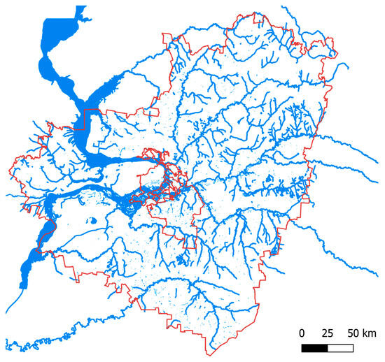 Spatial data on water bodies was taken from OpenStreetMap. The map of water bodies in the Samara region is presented in Figure 7.