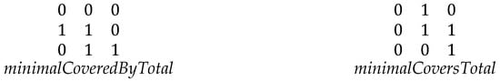 The four coveredBy relations (top to bottom): coveredBy, minimalCoveredBy, coveredByTotal, and minimalCoveredByTotal.